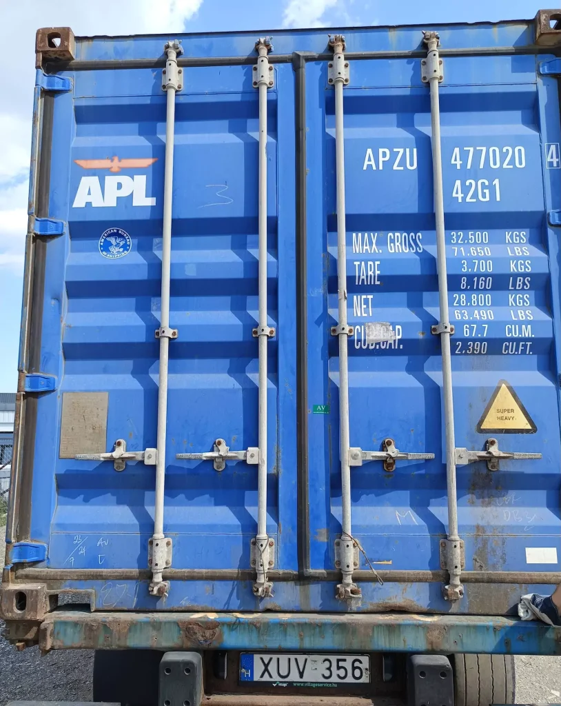 A 40 lábas konténer kiváló választás, ha nagyobb mennyiségű áru szállítása a cél. Ipari eszközök, építőanyagok, vagy gépek biztonságos tárolására és szállítására is alkalmas. Kiváló teherbírás és nagy kapacitás lehetővé teszi a hatékony logisztikai megoldásokat, miközben a szél- és vízálló kialakítás védelmet nyújt a szállított anyagoknak minden időjárási körülményben. A konténer egymásra rakható, így helytakarékos megoldást biztosít szállításkor.